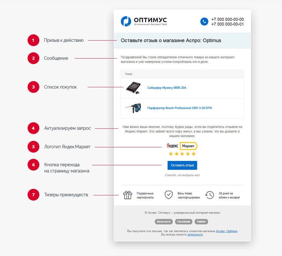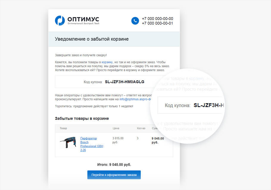 Let's take a look at how trigger emails might look like using Aspro: Market and Aspro: Optimus templates. Using their example, we will analyze popular chains and find out what increase in sales and conversion they can give.