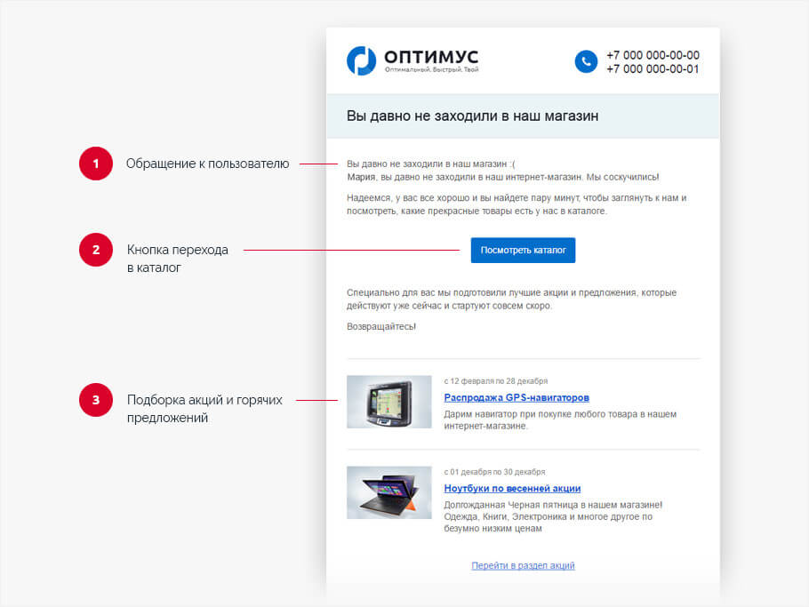 These are chains of letters that are launched after a certain action or event - a successful order, an abandoned cart, or if the user has not visited your online store for several months or has not made a purchase for a long time.